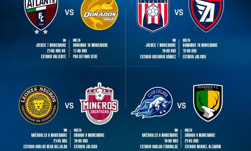 MORELIA, Mich., 5 de noviembre de 2024.- Con la ausencia del Club Atlético Morelia, los ocho mejores de la Liga de Expansión Mx se verán las caras los días 6 y 7 de noviembre en los juegos de ida y el 9 y 10 de noviembre con el desenlace de vuelta. La fiesta grande del circuito de plata del futbol mexicano se disputará a partir de los cuartos de final, con duelos que serán a ida y vuelta, dejando atrás el sistema Play In, que permitía la clasificación de algunos clubes del sótano.