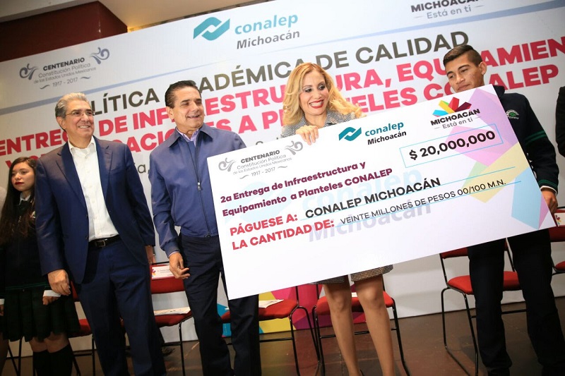 En su participación el secretario de Planeación y Desarrollo Institucional y en representación del Conalep Nacional, Francisco Cuauhtémoc Santiago Jaime, dijo que desde los planteles –todos con alto nivel de calidad y competencia- se brinda a estudiantes las herramientas necesarias para integrarse al mercado laboral y fortalecer sus estudios, por ello aplaudió la apuesta de mejorar el equipamiento e infraestructura en Michoacán.