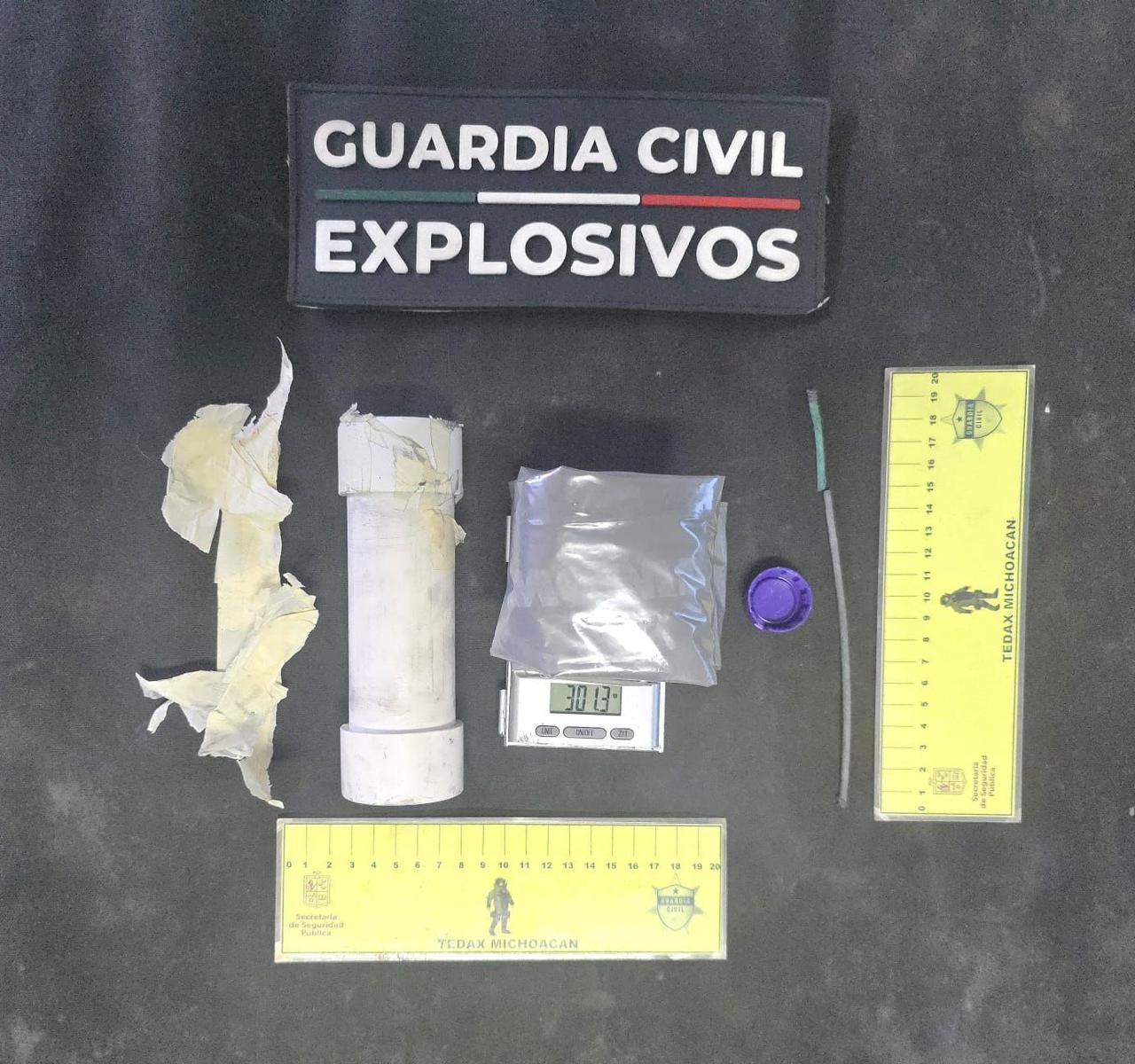 Los dispositivos, con características para ser empleados como granadas de mano, fueron elaborados con tubos de PVC, con carga aproximada de 301 gramos de pólvora y con una mecha pirotécnica de 20 centímetros.