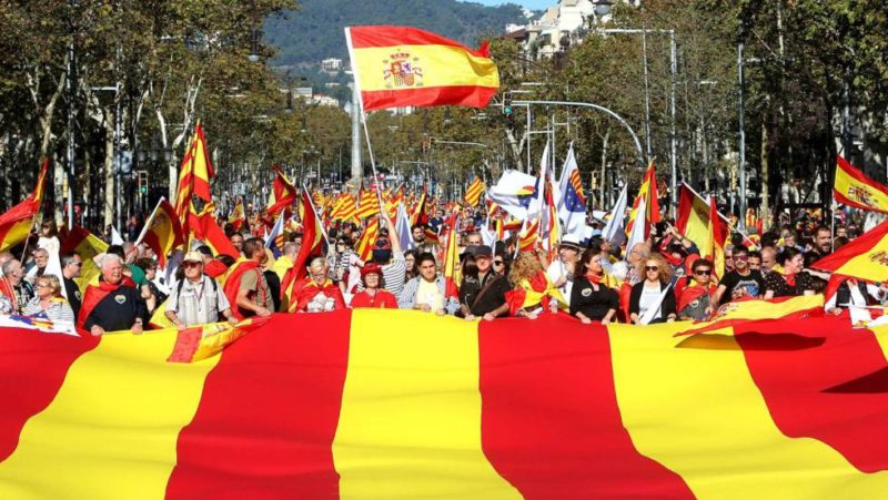 Cientos de miles de personas se han sumado este domingo en Barcelona a la manifestación convocada por Societat Civil Catalana, la principal organización ciudadana contra el independentismo. Todos somos Cataluña, rezaba el lema de su primera marcha tras la proclamación unilateral de la independencia y la aplicación del artículo 155. La multitudinaria protesta —1,3 millones de asistentes, según los organizadores, 300.000 según la Guardia Urbana— ha sido respaldada por cargos del Gobierno y políticos de los partidos constitucionalistas. Fue una llamada a la participación en los comicios del 21 de diciembre. «Votarem [Votaremos]», han gritado.